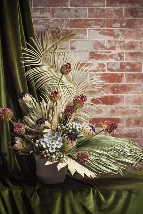 Each arrangement has a decidedly different character. “I kind of feel like when I go to the flower market in the morning, it’s like casting,” Fairchild says. “ I am seeing who’s showed up for the audition call and who is ripe and ready, and there is usually that one inspiration flower that dictates the whole entire thing. You find your feature flower and then you create a cast of other flowers. There’s so much about the process that feels theatrical.”