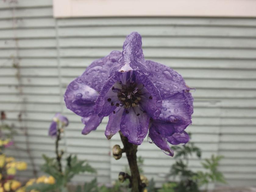 Most species of monkshood bloom in June, but I also have one species, Aconitum carmichaelii, which blooms now with intense blue flowers on 5-foot stems that do not flop. All monkshood species have poisonous sap, and some were said to be used to poison wolves in Russia. Agatha Christie probably had someone use it for tea, to get rid of an annoying relative, but I don’t recommend that.