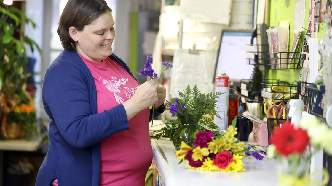 Gina Whipple builds a bouquet at Petersen & Tietz florists in Waterloo, Iowa, Wednesday, Oct. 14, 2020.