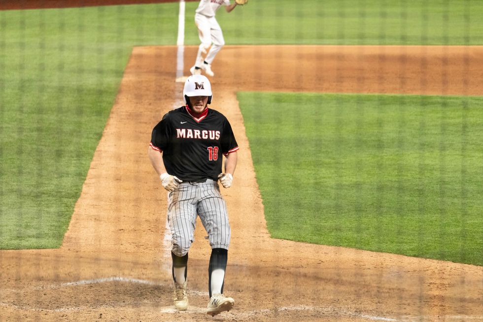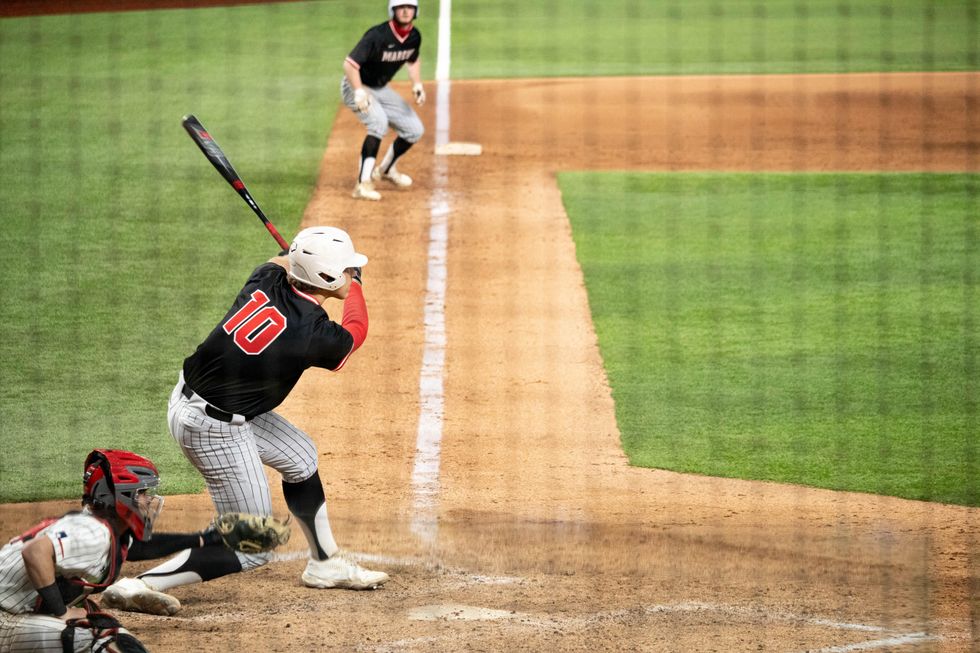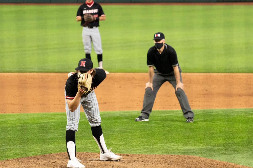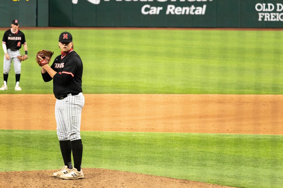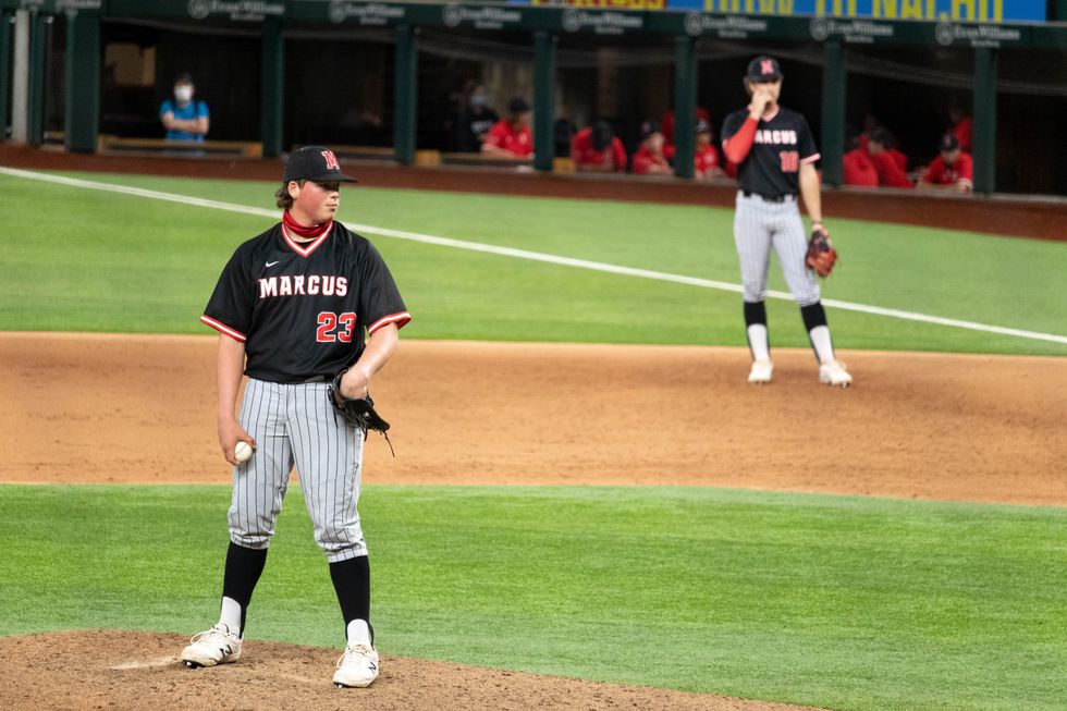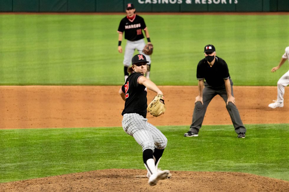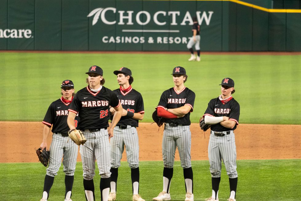 Saturday afternoon, Flower Mound Marcus baseball faced off against Lake Travis in the Texas High School Baseball Classic at Globe Life Field in Arlington, Texas. With a two-hour time limit for each game for the event, the Marauders finished the game in a 3-3 tie with the Cavaliers.