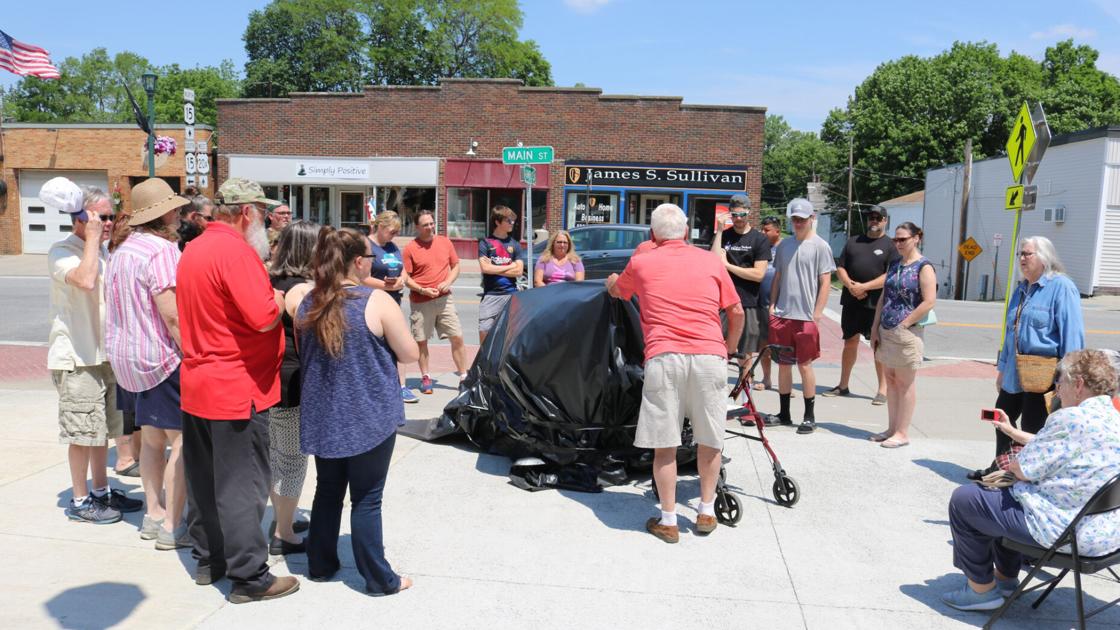 LIVONIA – After a week spent wondering, local residents found out Sunday afternoon what was under the tarp at the corner of Main and Commercial streets in the village.